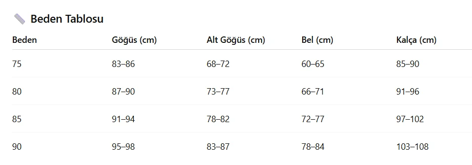 Kumaş: %90 Polyamid, %10 Elastan — yumuşak, esnek, vücuda uyumlu